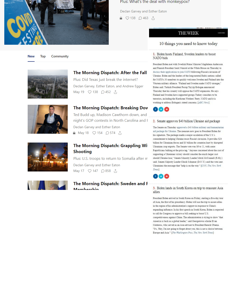 SUMMARY: The Morning Dispatch is a daily e-mail with short blurbs of the top headlines from around the world. Although this newsletter leans conservative, we appreciate that they are not afraid to critique both parties or give credit where credit is due. We recommend starting with the free version and then pay for a subscription if you want more in-depth stories and commentary.