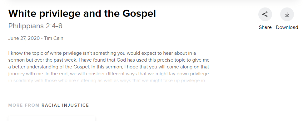 SUMMARY: Does white privilege exist? If it does exist, why is the idea repulsive to so many people? What are we supposed to do about it? Pastor Tim Cain of Kaleo Church (Lakeside, CA) answers those questions and more in a convicting sermon full of wisdom. Cain believes that we must first acknowledge that advantages exist, realize that everything we have is a gift from God, and then steward our privilege for the oppressed.
