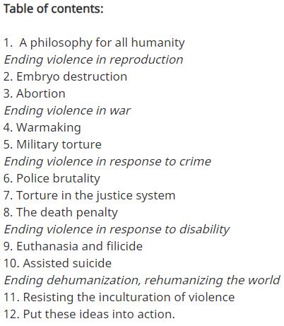 Following the introduction Murphy tackles many of the contentious issues relating to life such as embryo destruction, abortion, war, the death penalty, and euthanasia. Each chapter is thoughtfully organized with a brief, detailed, and easy-to-understand introduction on what the issue is followed by an ethical analysis and a history of the policy on the issue. Murphy pivots in the second half of the chapters by suggesting non-violent policy solutions to the issue while addressing several of the common arguments that are made in support of the issue she is discussing.