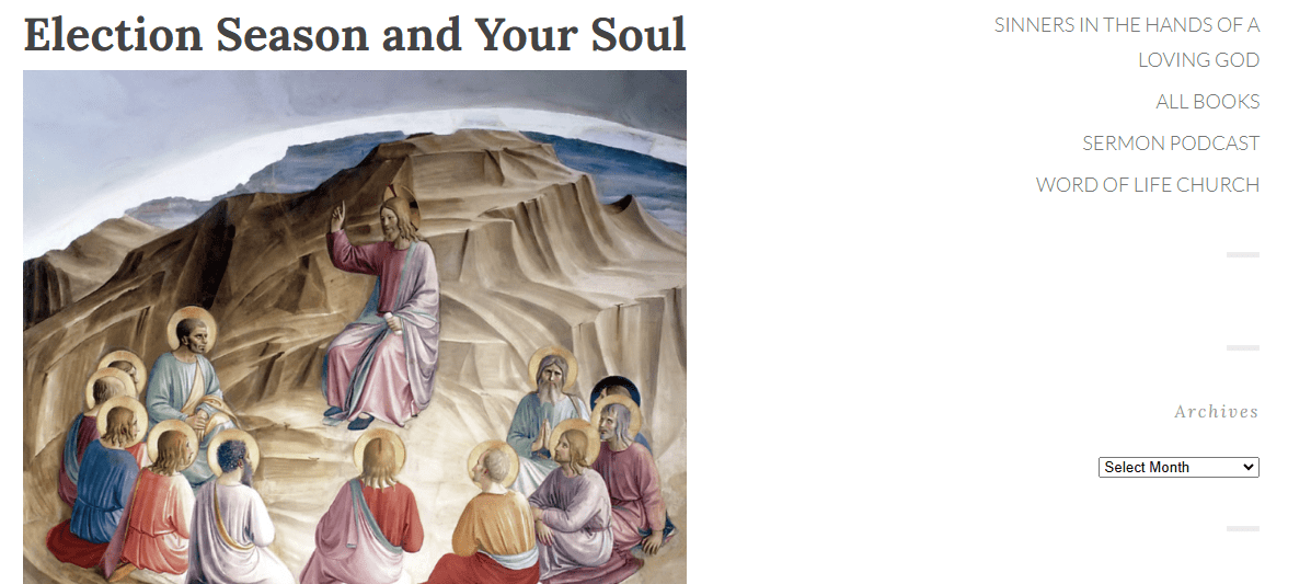 KEY QUOTE: “The political process, while necessary, has little to do with how God is saving the world.”